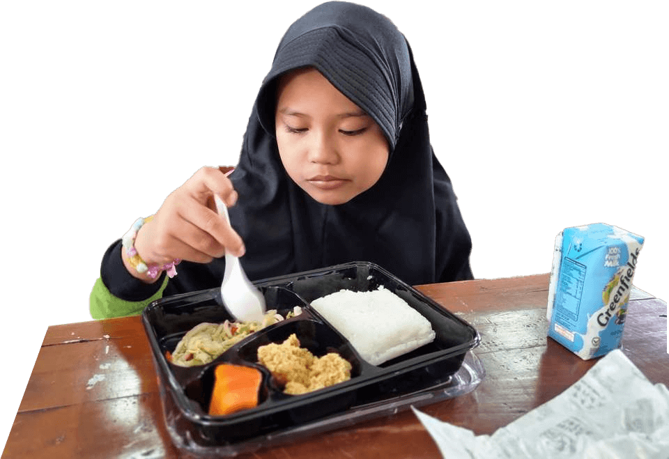 sekolah, khususnya di daerah pedesaan. Didukung oleh World Food Programme (WFP) yang merupakan organisasi kemanusiaan di bawah Persatuan Bangsa- bangsa (PBB) dan Food and Agriculture Organization (FAO), program ini menyediakan makanan bergizi untuk mendorong siswa dari keluarga berpenghasilan rendah agar terus bersekolah.